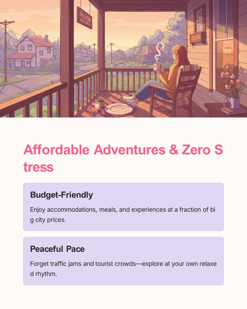 Let’s talk money: small towns are easier on the wallet. From cozy B&Bs to affordable local eats, you’ll stretch your budget further without sacrificing charm. Plus, fewer tourist traps mean more authentic experiences.